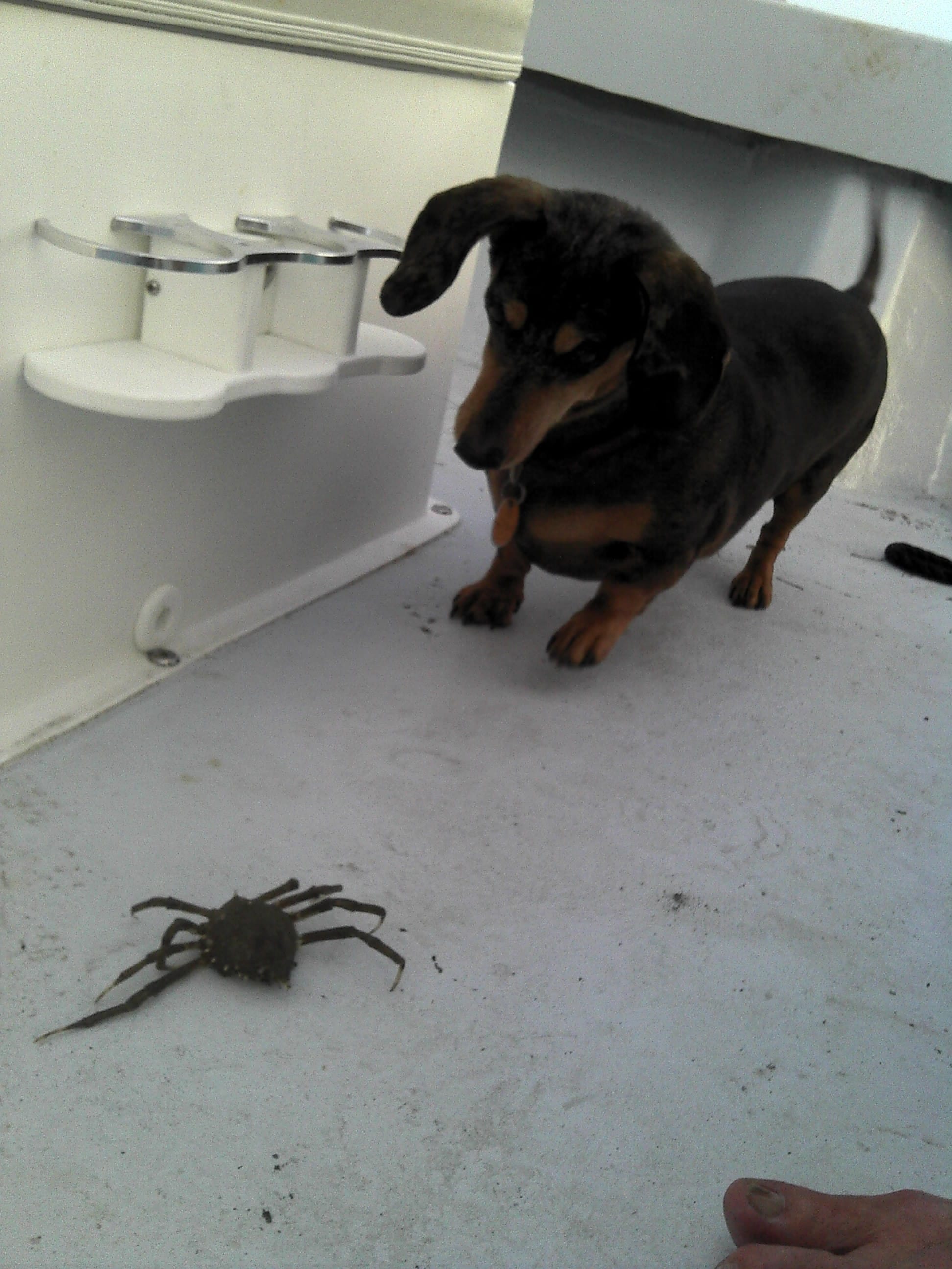Fishing dachshund.
